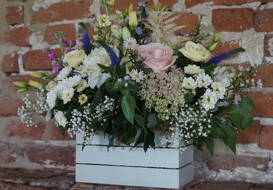 Posies are round in shape and gradually raised in the centre. They are perfect for a table centre or for being placed on a side table, as the flowers can be viewed from every angle. They are sure to brighten up a dinner table or look pretty on a smaller side table.